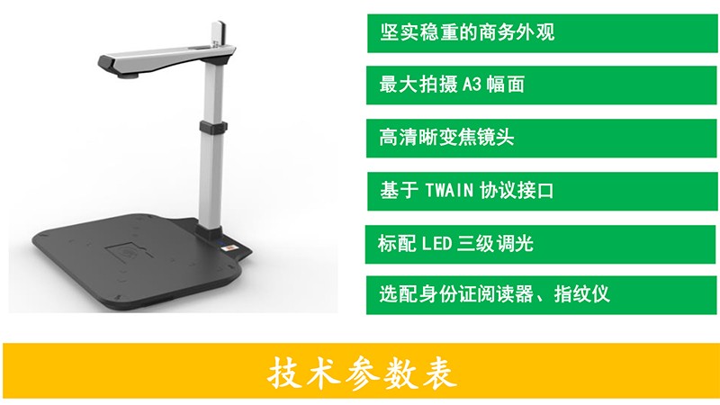 捷宇高拍儀產(chǎn)品可以完全取代傳統(tǒng)平板掃描儀,除了在各項(xiàng)性能指標(biāo)上優(yōu)于傳統(tǒng)掃描儀之外,更具備了體積小、無(wú)機(jī)械損耗、不用外接電源等傳統(tǒng)掃描儀無(wú)法實(shí)現(xiàn)的優(yōu)點(diǎn)!