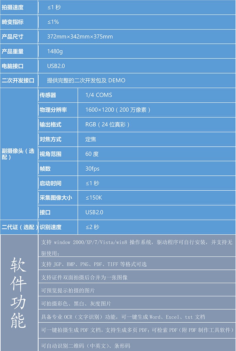 捷宇高拍儀產(chǎn)品可以完全取代傳統(tǒng)平板掃描儀,除了在各項(xiàng)性能指標(biāo)上優(yōu)于傳統(tǒng)掃描儀之外,更具備了體積小、無機(jī)械損耗、不用外接電源等傳統(tǒng)掃描儀無法實(shí)現(xiàn)的優(yōu)點(diǎn)!