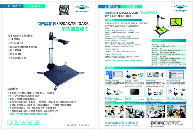 全新產(chǎn)品外觀結(jié)構(gòu)設(shè)計,高集成十合一(主攝像頭、副攝像頭、第三號擴(kuò)展攝像頭、二代證讀卡器、接觸式IC卡讀卡器、非接觸式IC卡讀卡器、指紋采集儀、磁條讀卡器、條碼二維碼識別、MIC),可根據(jù)具體需求靈活配置; 底座A3/A4兼容,便于柜臺擺放;重量輕巧、便于搬移;高拍儀與文稿臺裝配,采用一插到位設(shè)計方式,簡便拆裝工序;主攝像采用專用的精準(zhǔn)定位技術(shù),保證視頻圖像在底座上居中且無畸變,操作員只需按底座上的提示框放置掃描件即可,簡單方便;鋁合金材質(zhì)結(jié)實(shí)耐用, 精巧美觀,防靜電、防震;功率小、節(jié)能(≤2.5W);設(shè)備須采用USB 2.0 連接與供電,設(shè)備使用壽命≥4年。 |