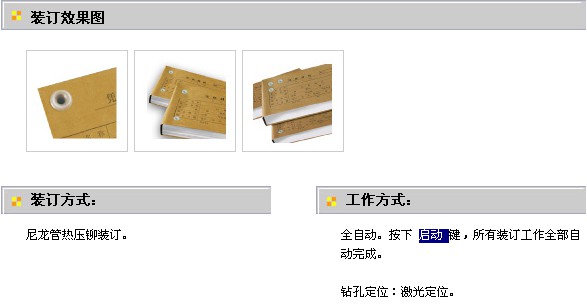 3、全自動:按下啟動鍵,所有裝訂工作全部自動完成。